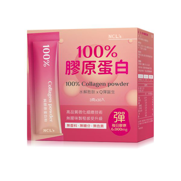 100%膠原蛋白粉 簡介【水亮Q彈 彈出光采】日本製造水解技術,100%高純度,完整保存膠原活性。分子量<3,000;無腥味、好溶解。完勝市售頂級規格,打造豐潤有彈力的美机,為你鞏固青春彈力~